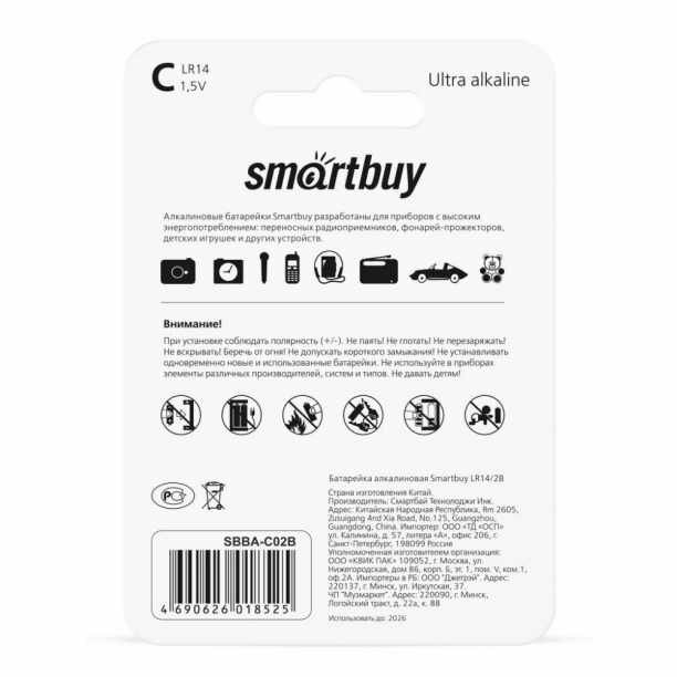 Smartbuy Sbba-c02b, Size"C", 1.5V, щелочной (alkaline) (уп. 2 шт)