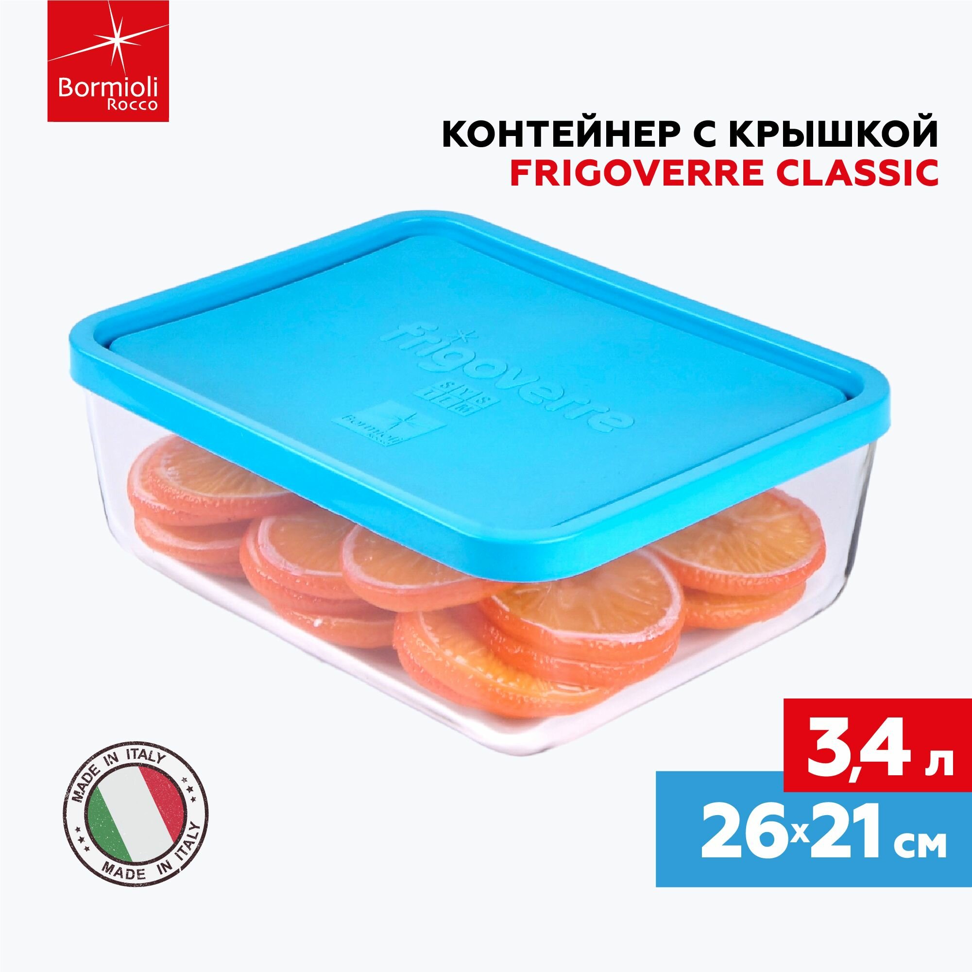 Bormioli Rocco FRIGOVERRE Контейнер прямоугольный 26x21 см (3700 мл) с крышкой (4/140) Б0019863 интересное: