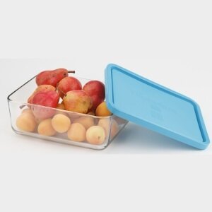 Стеклянный контейнер Frigoverre Bormioli Rocco прямоугольный 26*21 см, 3000 мл, с синей крышкой
