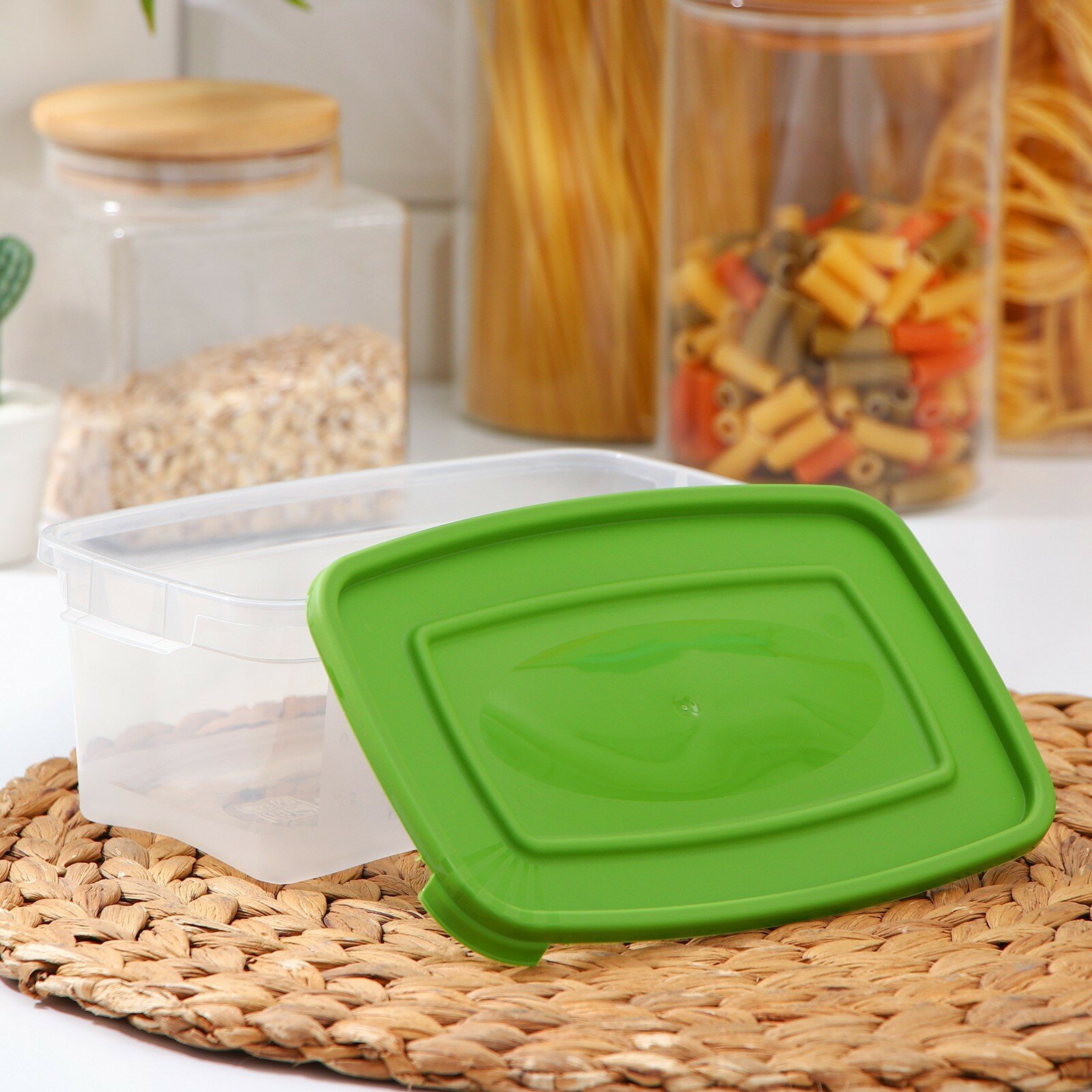 Набор контейнеров пищевых Доляна, 3 шт: 1 л, 18,5×12×7 см, прямоугольные, прозрачные, крышка зелёная