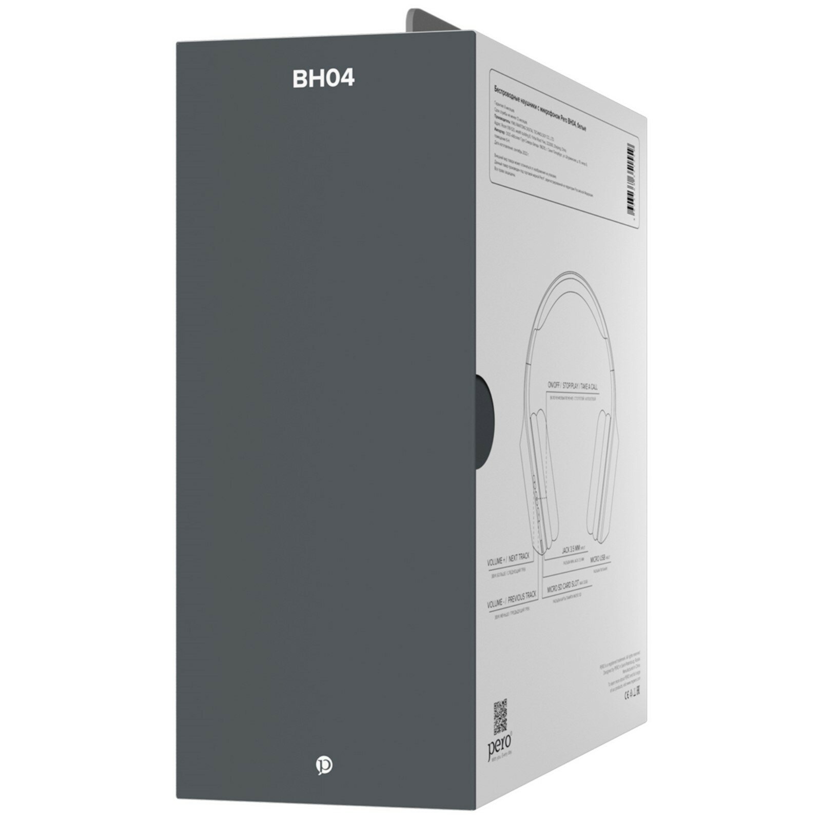 Наушники PERO BH04, беспроводные, полноразмерные, микрофон, 400 мАч, до 20 часов, черные