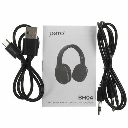 PERO Наушники PERO BH04, беспроводные, полноразмерные, микрофон, 400 мАч, до 20 часов, черные