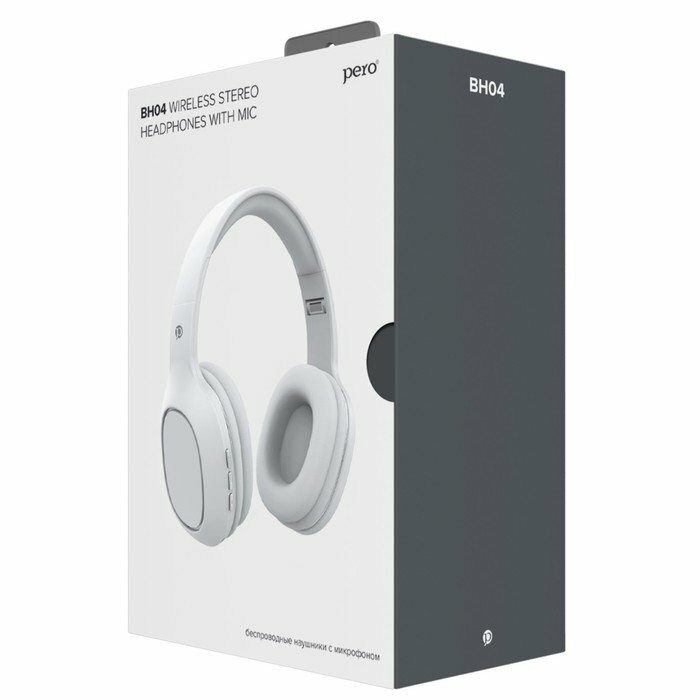 Наушники Pero Bh04, беспроводные, полноразмерные, микрофон, 400 мАч, до 20 часов, белые Pero 9568438 .