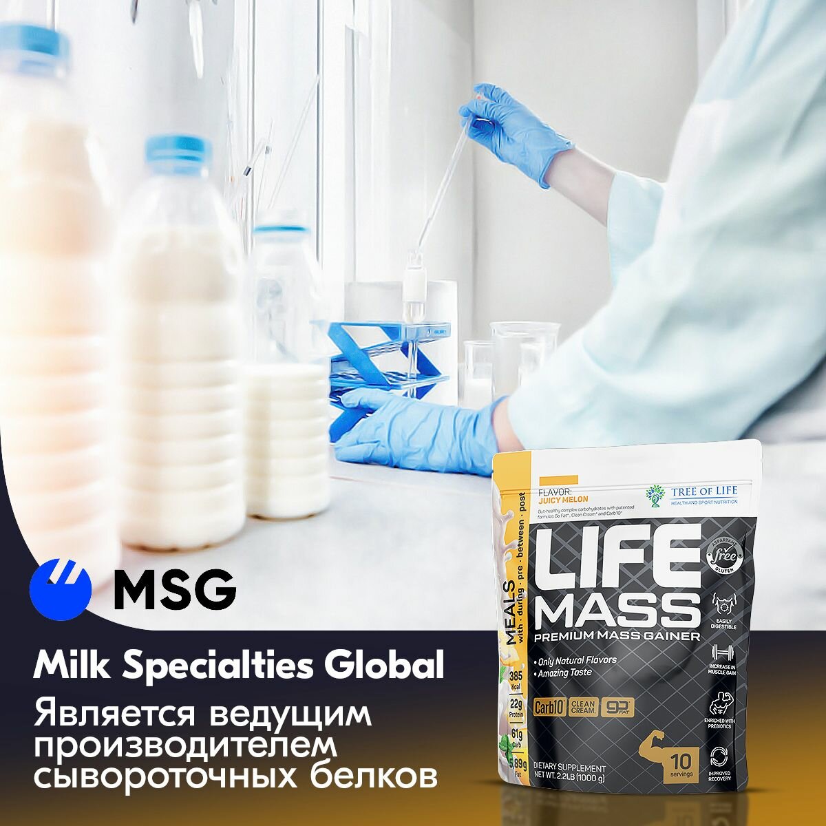 гейнер Life Mass 2.2LB со вкусом Банановый милкшейк 10 порций