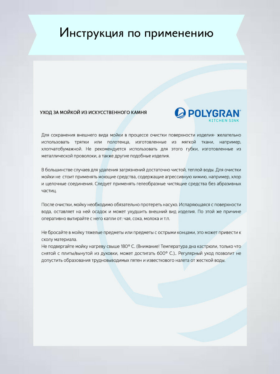 Мойка кухонная POLYGRAN Atol-460 Белый хлопок № 36