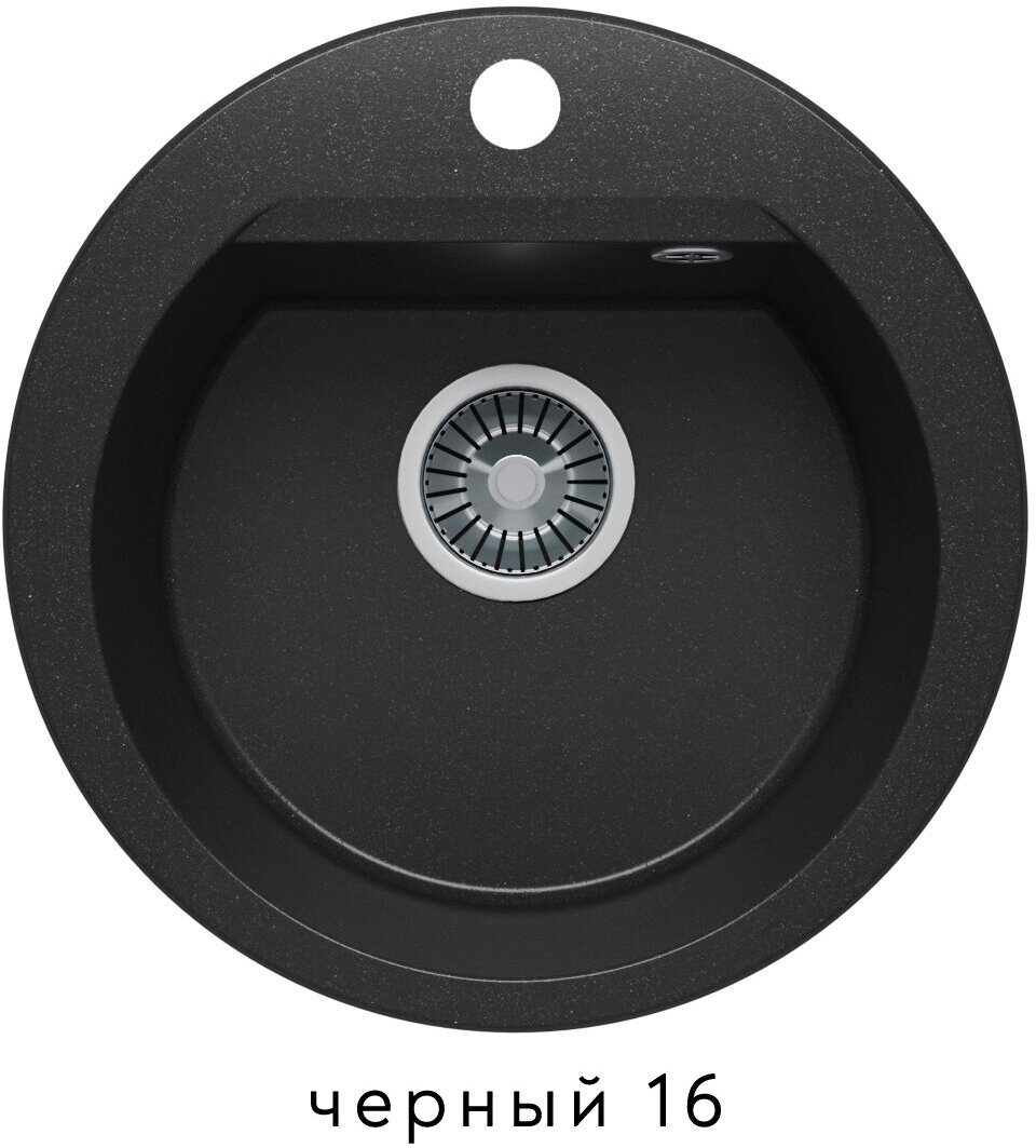 Мойка для кухни POLYGRAN ATOL-460 каменная, врезная, раковина кухонная, круглая с отверстием под смеситель (№16 Черный)