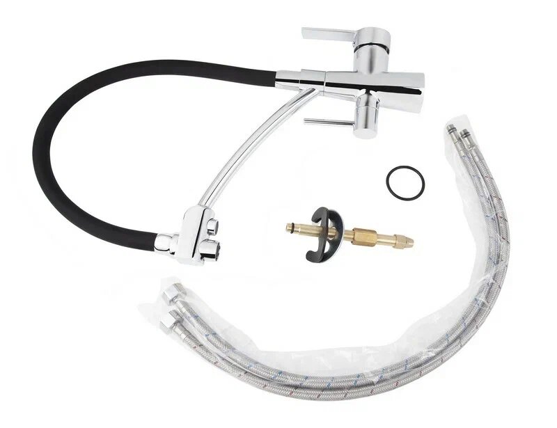 Смеситель для кухни с фильтром для питьевой воды с гибким изливом VIKO V-5512 цвет хром черный