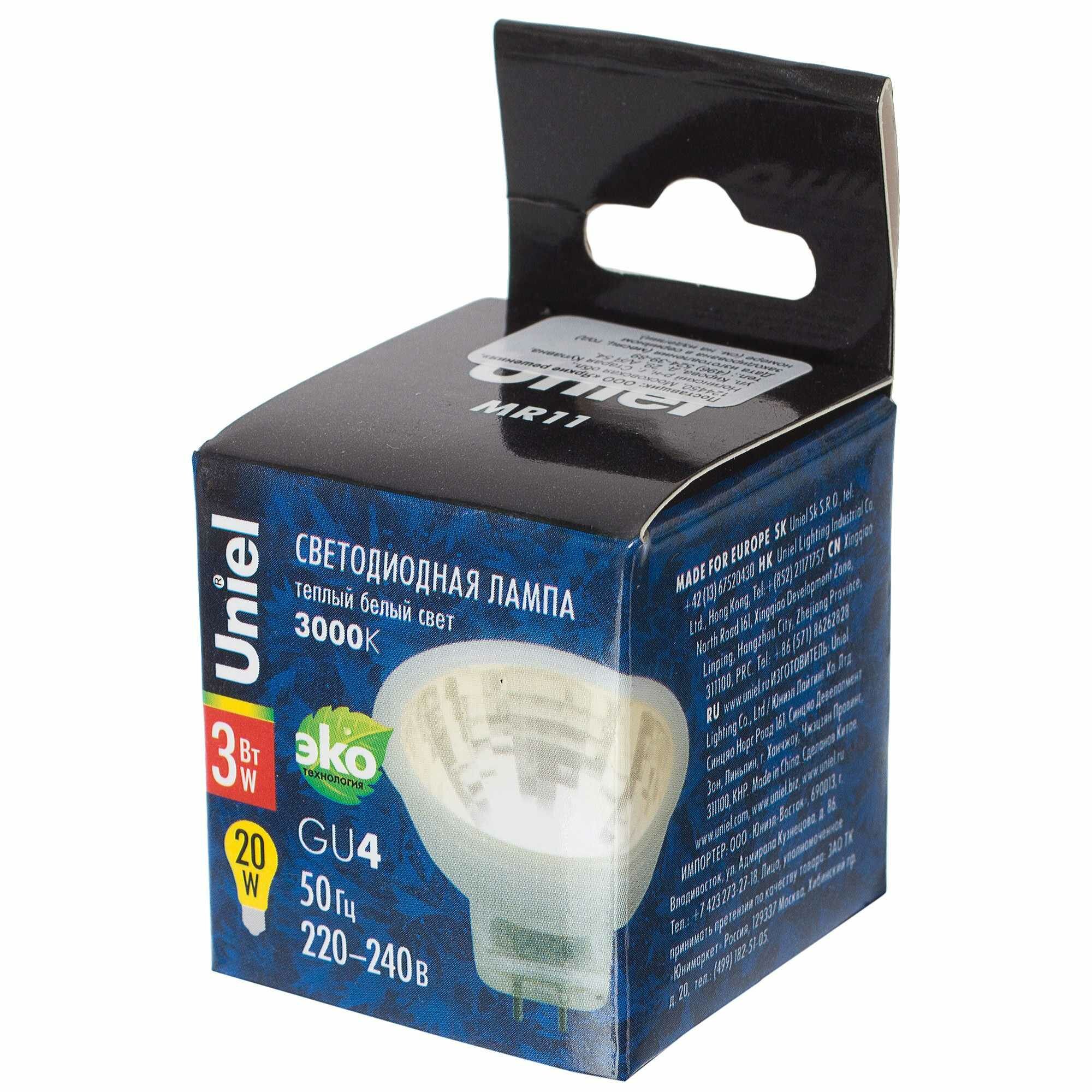 Лампа светодиодная Uniel GLZ21TR UL-00001702, GU4, MR11, 3 Вт, 3000 К