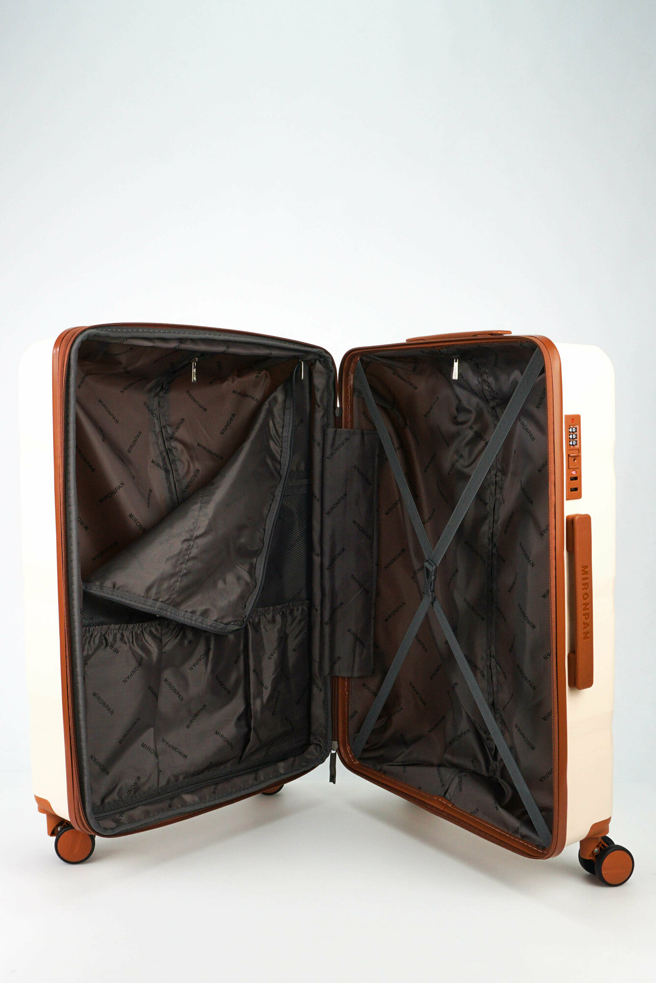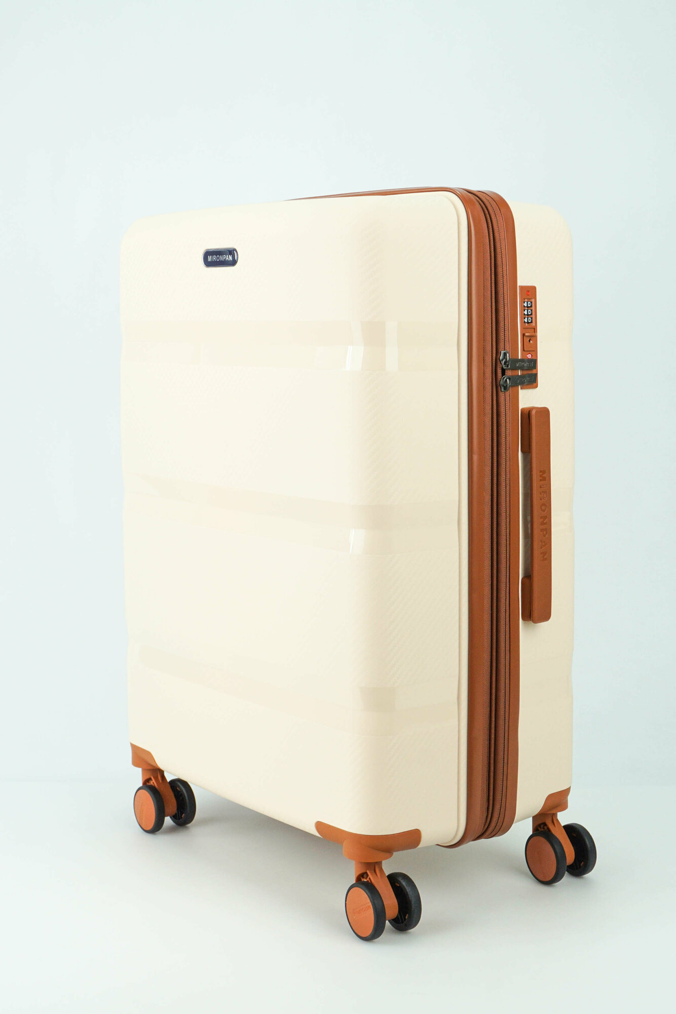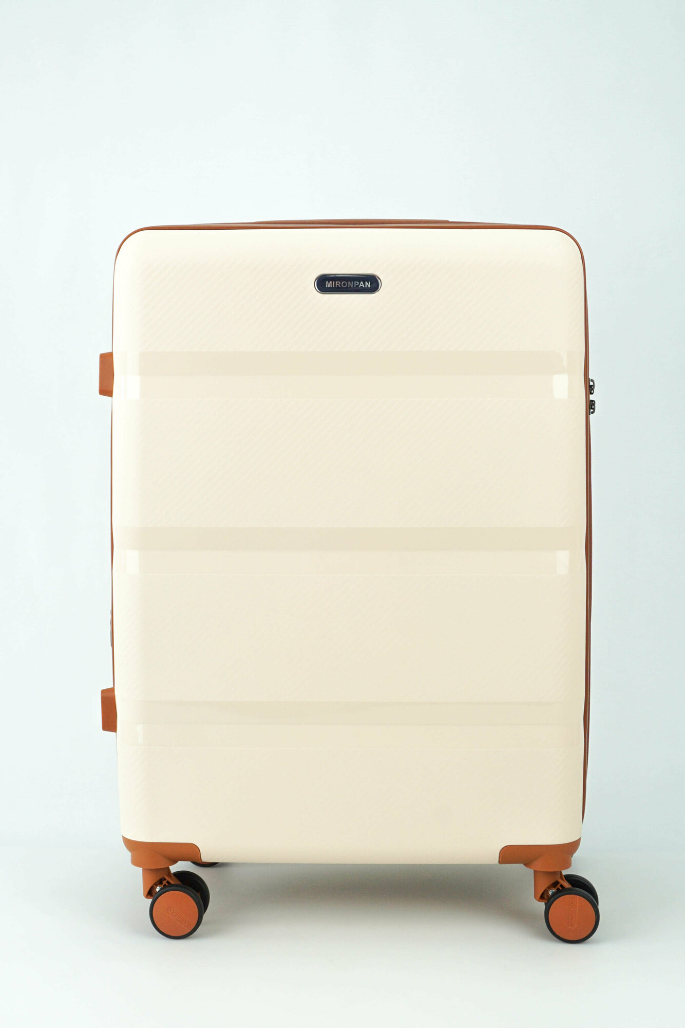 Купить Чемодан Sweetbags средний из полипропилена с расширением на 4-х колесах с TSA замком (3 гориз. полосы) бежевый с коричневым M+