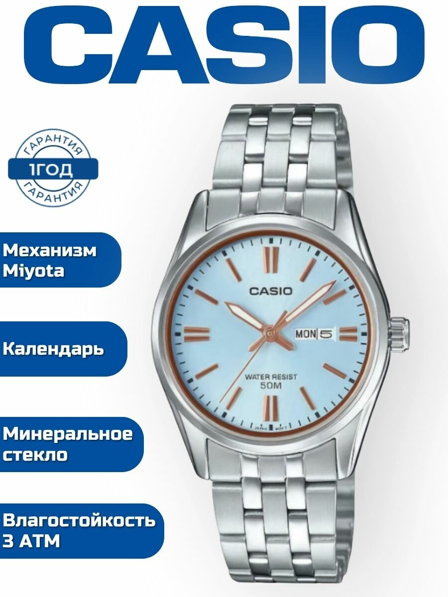Наручные часы CASIO Collection LTP-1335D-2А, серебряный, голубой