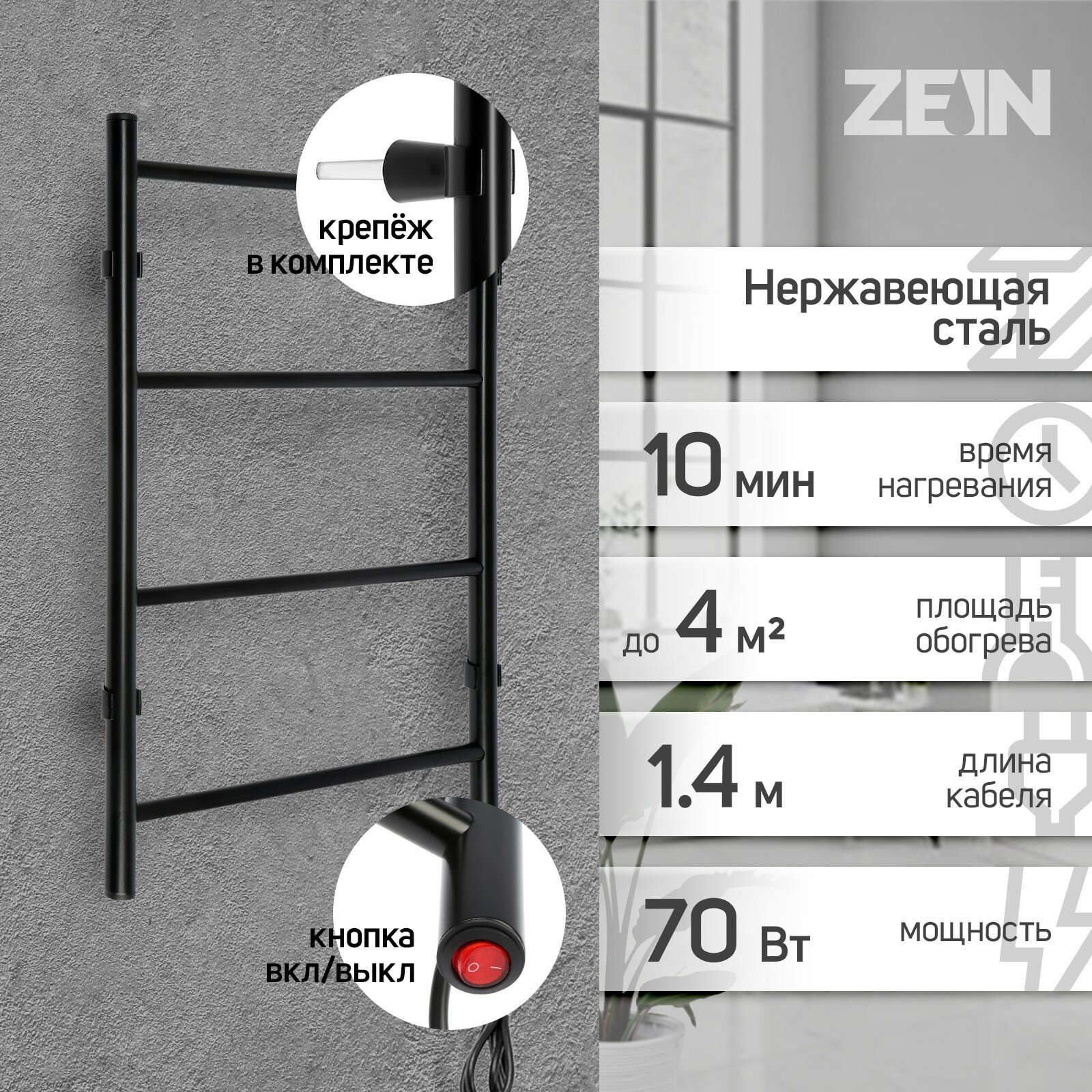 Полотенцесушитель электрический ZEIN PE-03, "Электра", 500х600 мм, 4 перекладины, черный