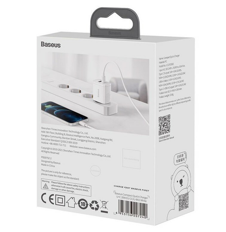 СохранитьBaseus Сетевое зарядное устройство Baseus Compact Quick Charger 20W U+C CCCP20UE CCXJ-B02 белое интересное:
