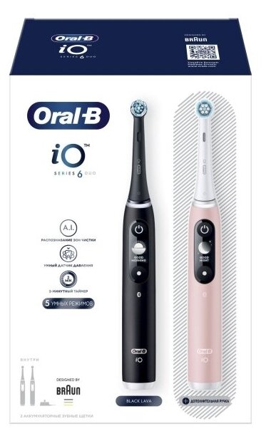 Купить Электрическая зубная щетка Oral-B iO Series 6 Duo, черный + розовый 4210201448877