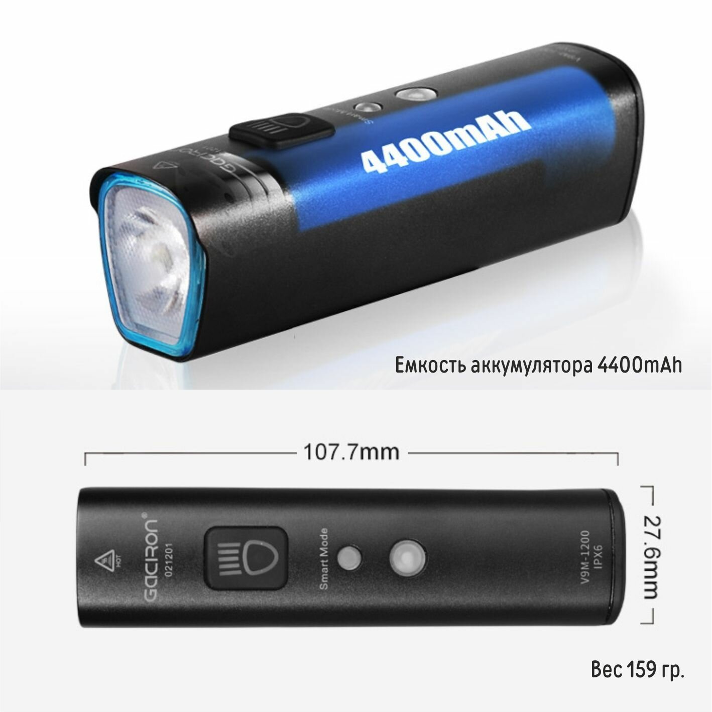 Фонарь для велосипеда / Gaciron / V9M1200 аккумуляторный 1200 люмен интересное: