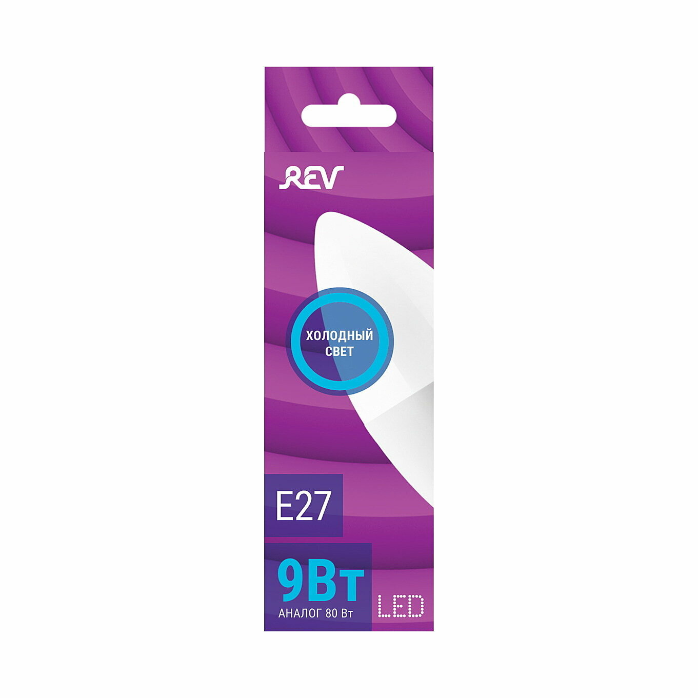 Лампочка светодиодная REV, свеча, Е27, 9W, 6500K, холодный свет