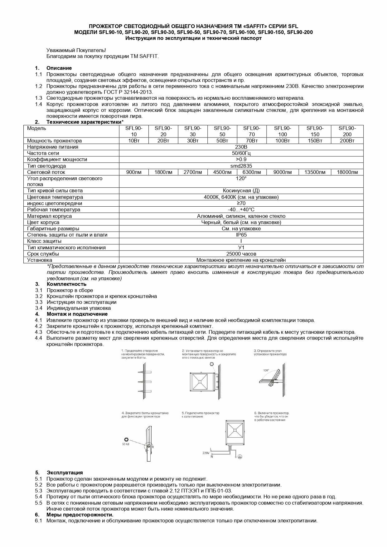 Светодиодный прожектор SAFFIT SFL90-20 IP65 20W 6400K