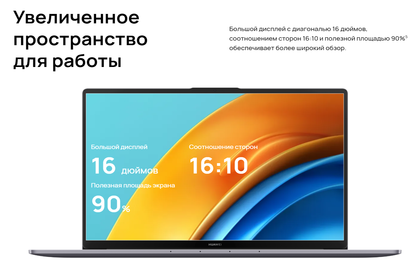 Ноутбук Huawei MateBook D 16, 16" (1920x1200) IPS/Intel Core i5-12450H/16ГБ DDR4/1ТБ SSD/UHD Graphics/Без ОС, серый космос (53013YLY)
