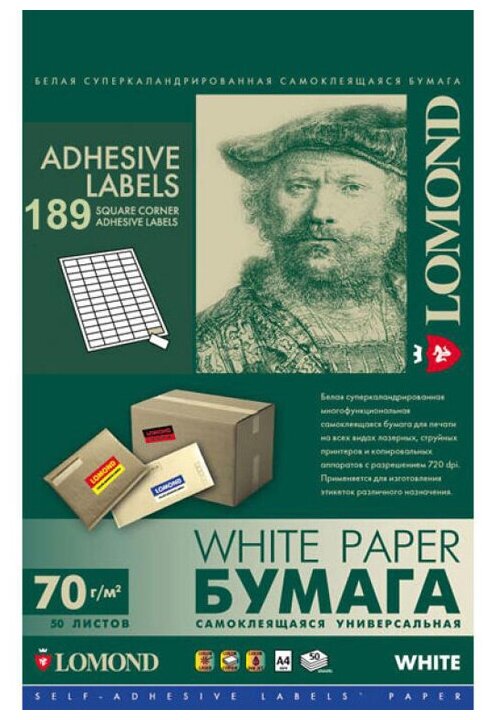 Ниже Вы можете прочитать отзывы на Самоклеящаяся бумага LOMOND универсальная для этикеток, A4, 189 делен. (25.4 х 10 мм), 70 г/м2, 50 листов, ознакомится с подробными характеристиками, посмотреть интересные обзоры и фотографии на Самоклеящаяся бумага LOMOND универсальная для этикеток, A4, 189 делен. (25.4 х 10 мм), 70 г/м2, 50 листов.