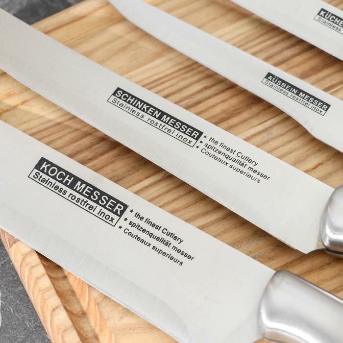 Набор на подставке "Блеск стали", 6 предметов: 5 ножей лезвие 9.5 см, 13 см, 13.5 см, 20.5 см, 20.5 см, ножницы