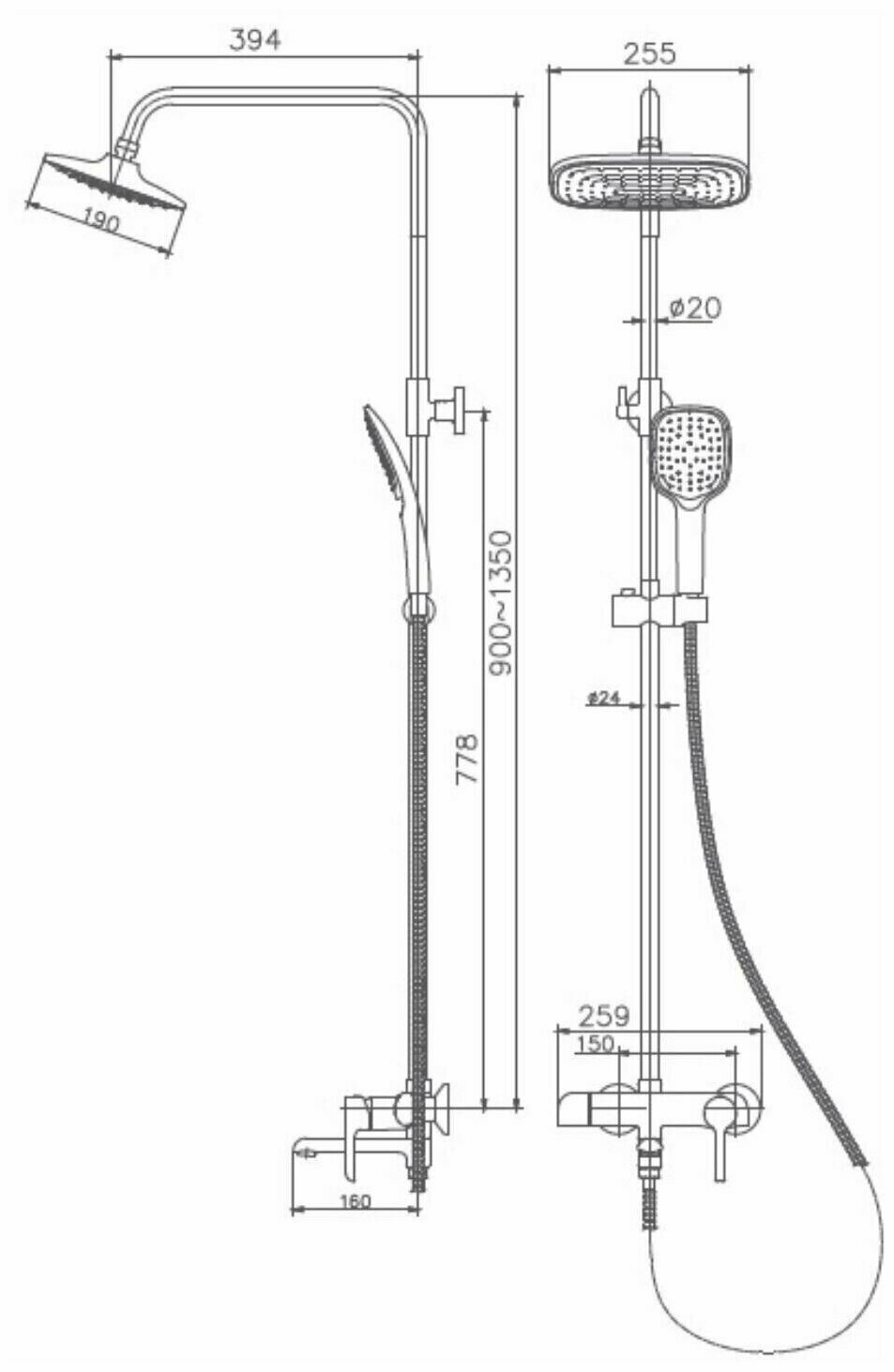 | Комплектация | с душевой лейкой / с шлангом для душа / с кронштейном / верхний душ / душевая стойка / Смеситель |