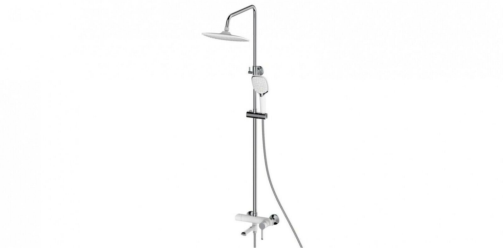 Душевая система Haiba HB24805-8 со смесителем, излив-переключатель на лейку,с верхним душем и ручной лейкой, белый/хром