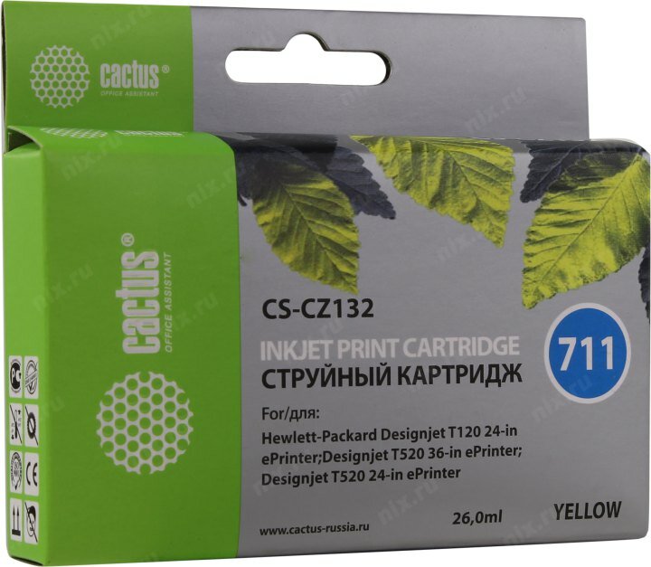 Cartridge ink Cactus CS-CZ132 №711 yellow (26ml) for HP DJ T120/T520
