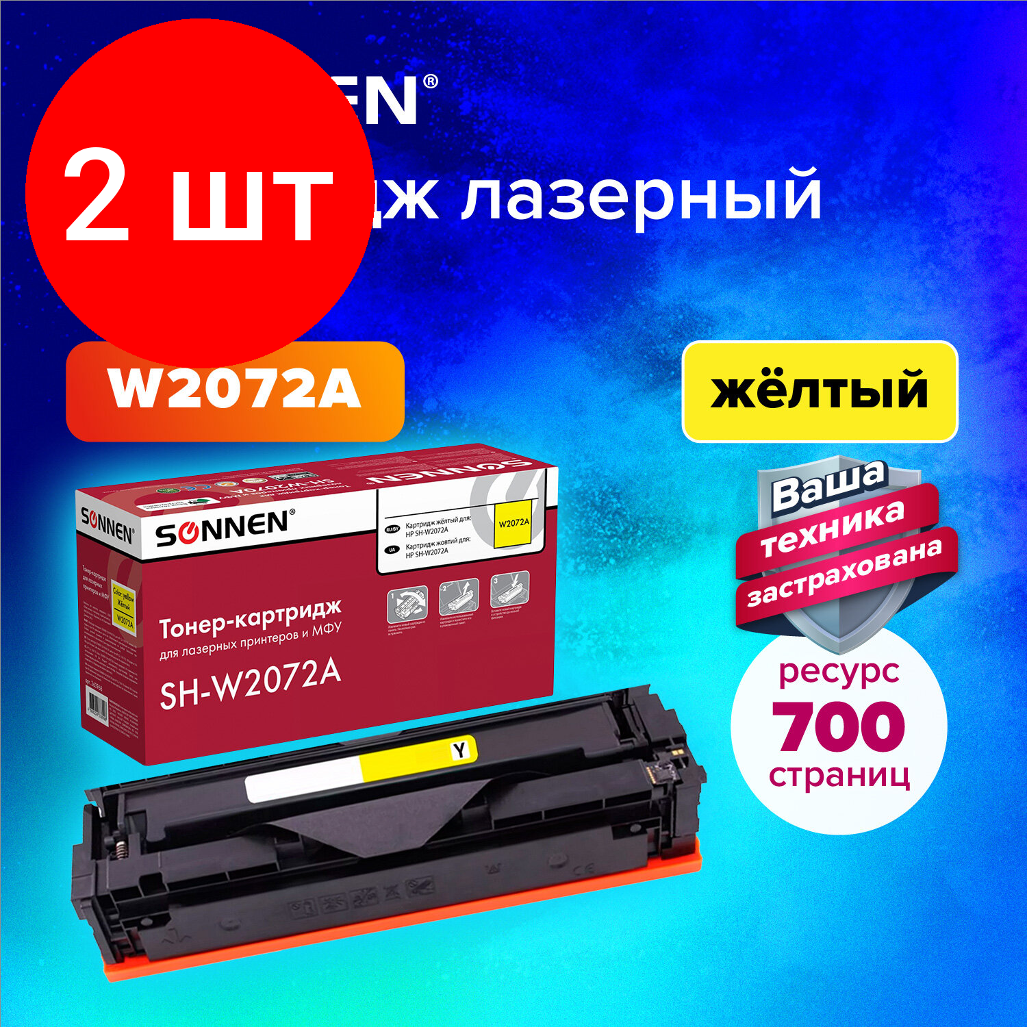Купить Комплект 2 шт, Картридж лазерный SONNEN (SH-W2072A) для HP СLJ 150/178 высшее качество желтый, 700 стр. 363968