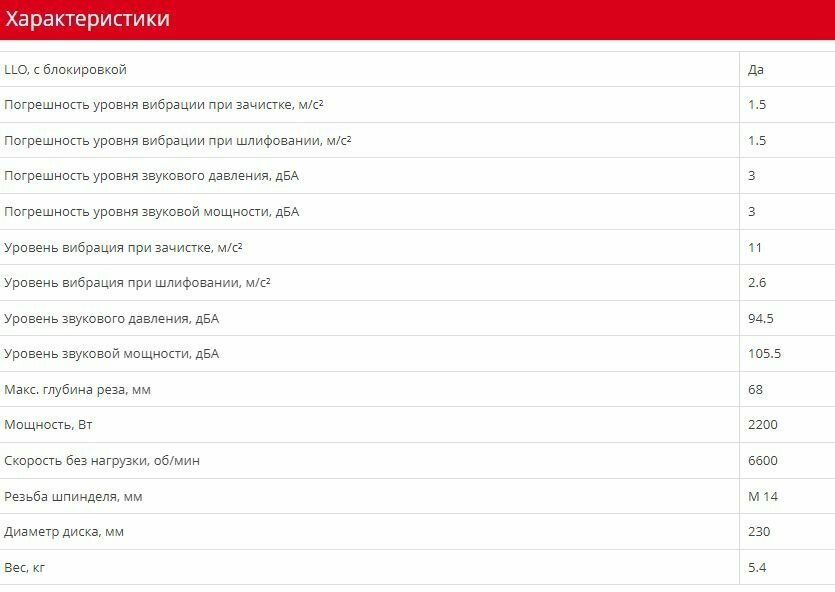 | Макс. диаметр диска | 230 мм |