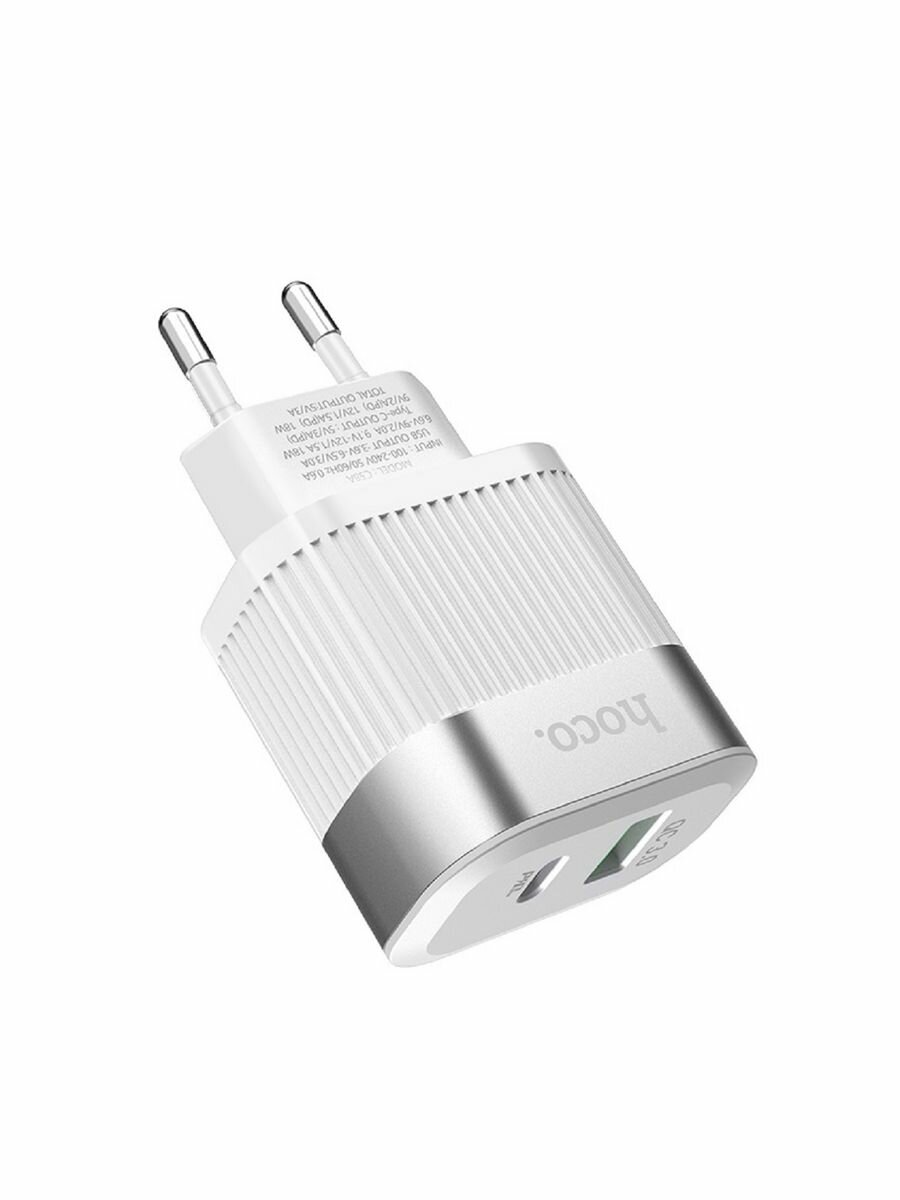 Сетевое зарядное устройство, 1 USB 3.0 QC+1 PD 20W (C58A), HOCO, белый