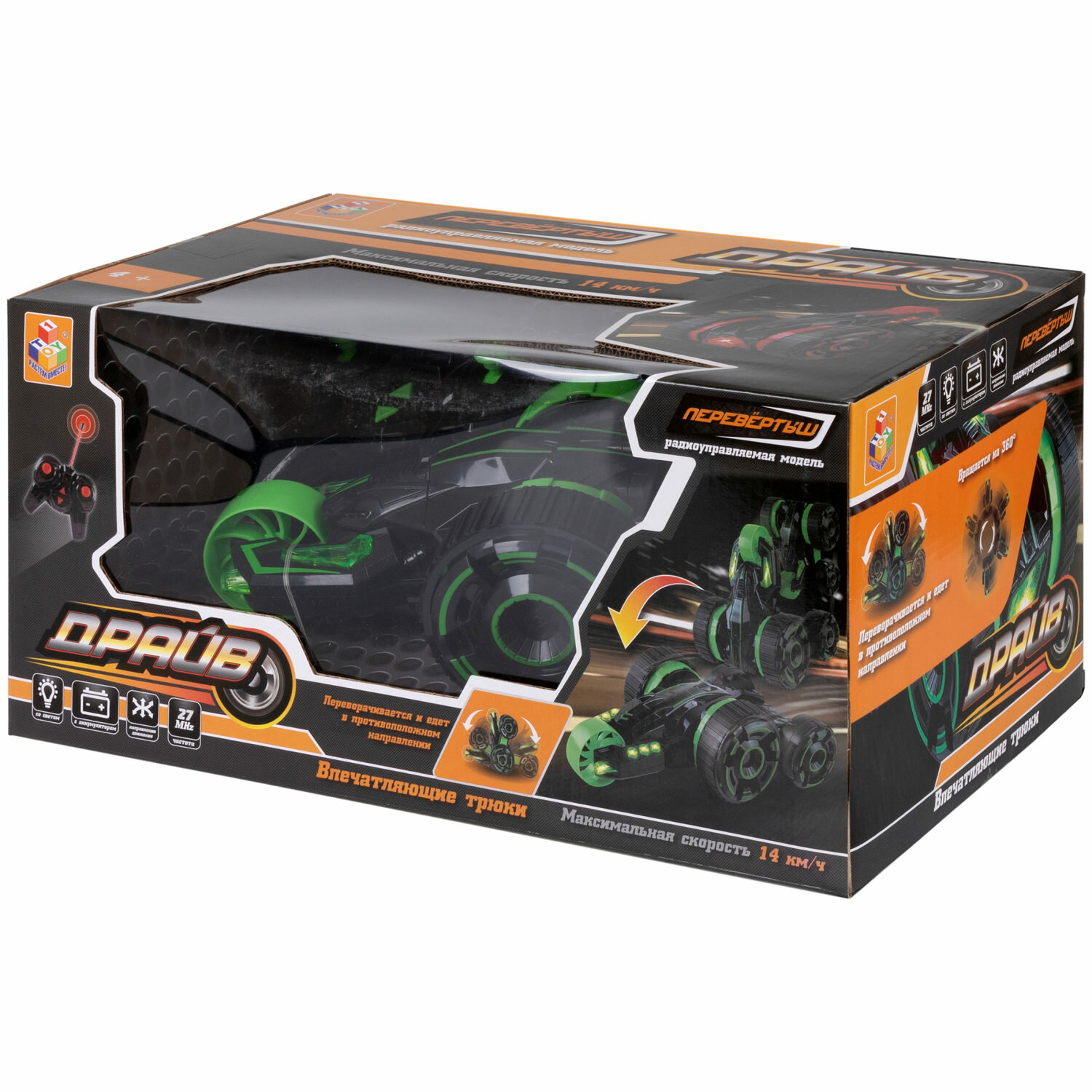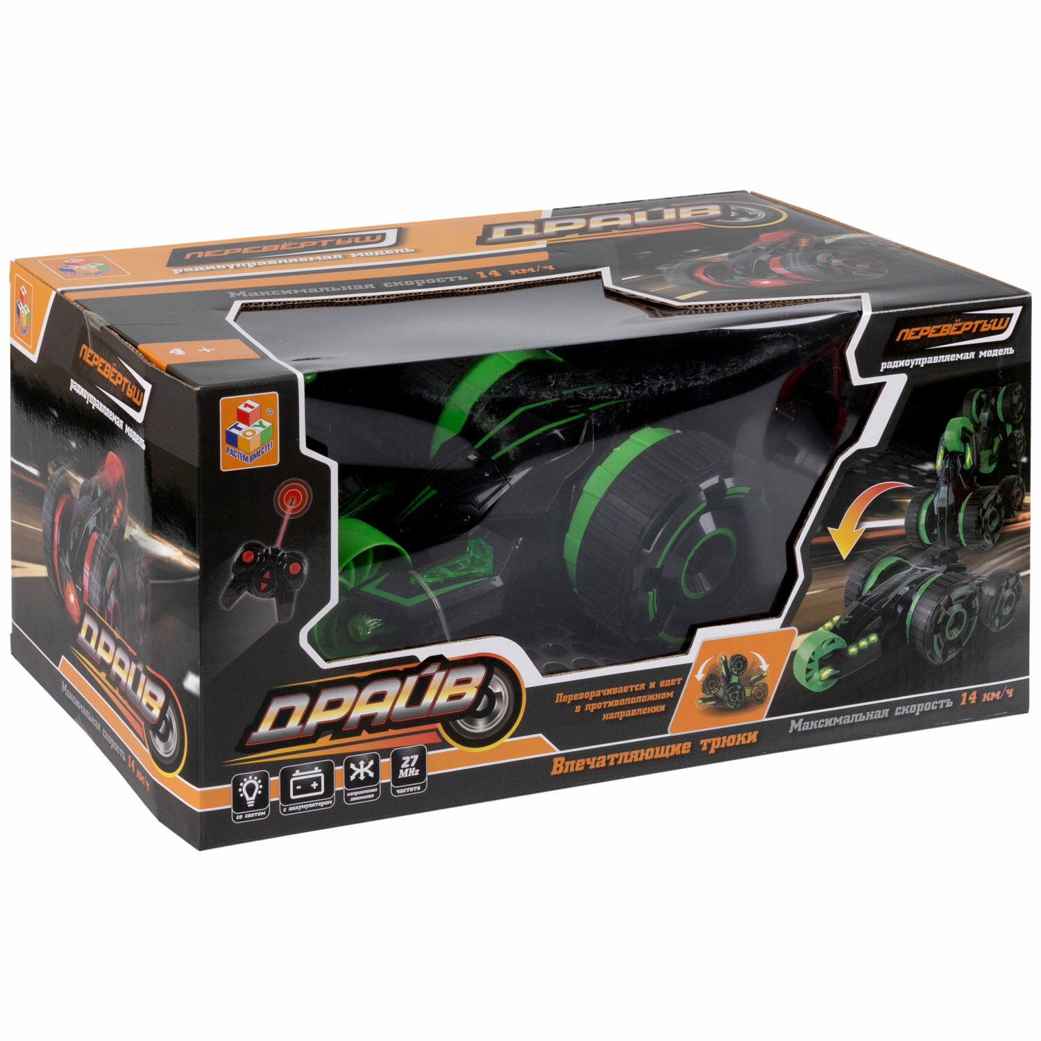 Купить машинка 1toy Драйв, трюковая машина-перевёртыш на р/у, 27MHz, со светом, с АКБ, зеленый