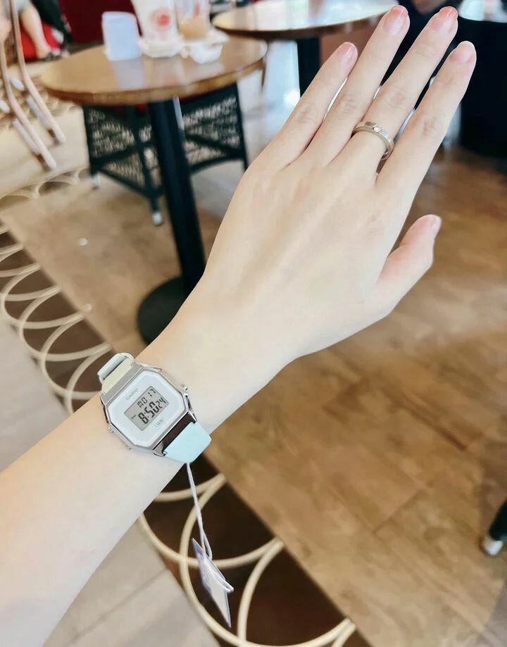 LA680WEA-1E Casio наручные часы кварцевые WR30 (3 атм) женские серебряный секундомер будильник отображение дня недели, отображение числа подсветка дисплея акриловое стекло