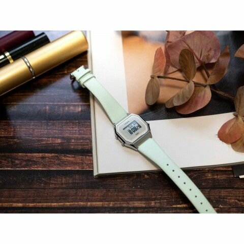 LA680WEL-3D Casio наручные часы кварцевые WR30 (3 атм) женские серебряный, зеленый секундомер будильник отображение дня недели, отображение числа подсветка дисплея акриловое стекло