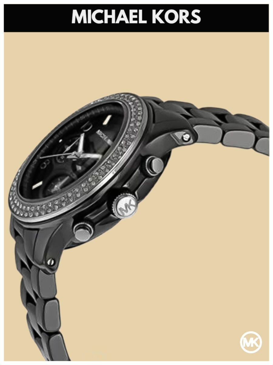 Часы Женские Michael Kors со стразами Черные Керамика интересное: