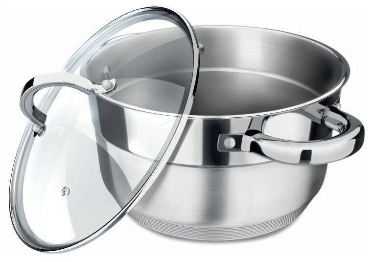 | Плюсы: | Удобная кастрюля со стеклянной крышкой и утолщенным многослойным дном против пригорания. |