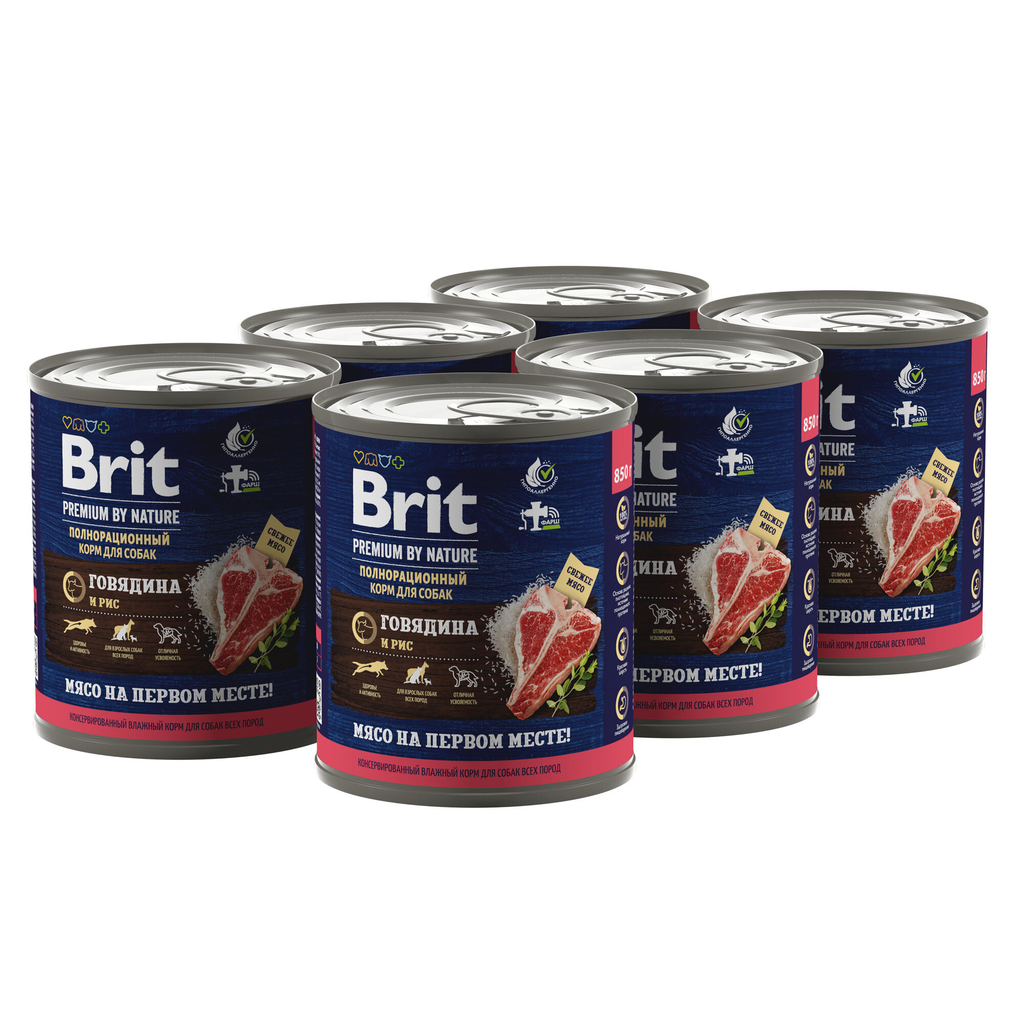 Brit Premium by Nature полнорационный влажный корм для собак, фарш из говядины с рисом, в консервах - 850 г х 6 шт