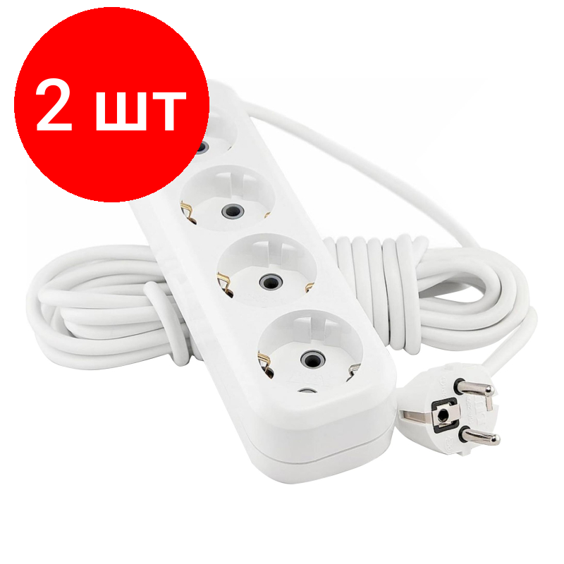 Купить Комплект 2 штук, Удлинитель LUX У4-Е-05 4-местный с з/к, 250В 16А, 5м