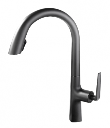 Смеситель для кухни с выдвижной лейкой KAISER Strike 09066-2, цвет черный матовый