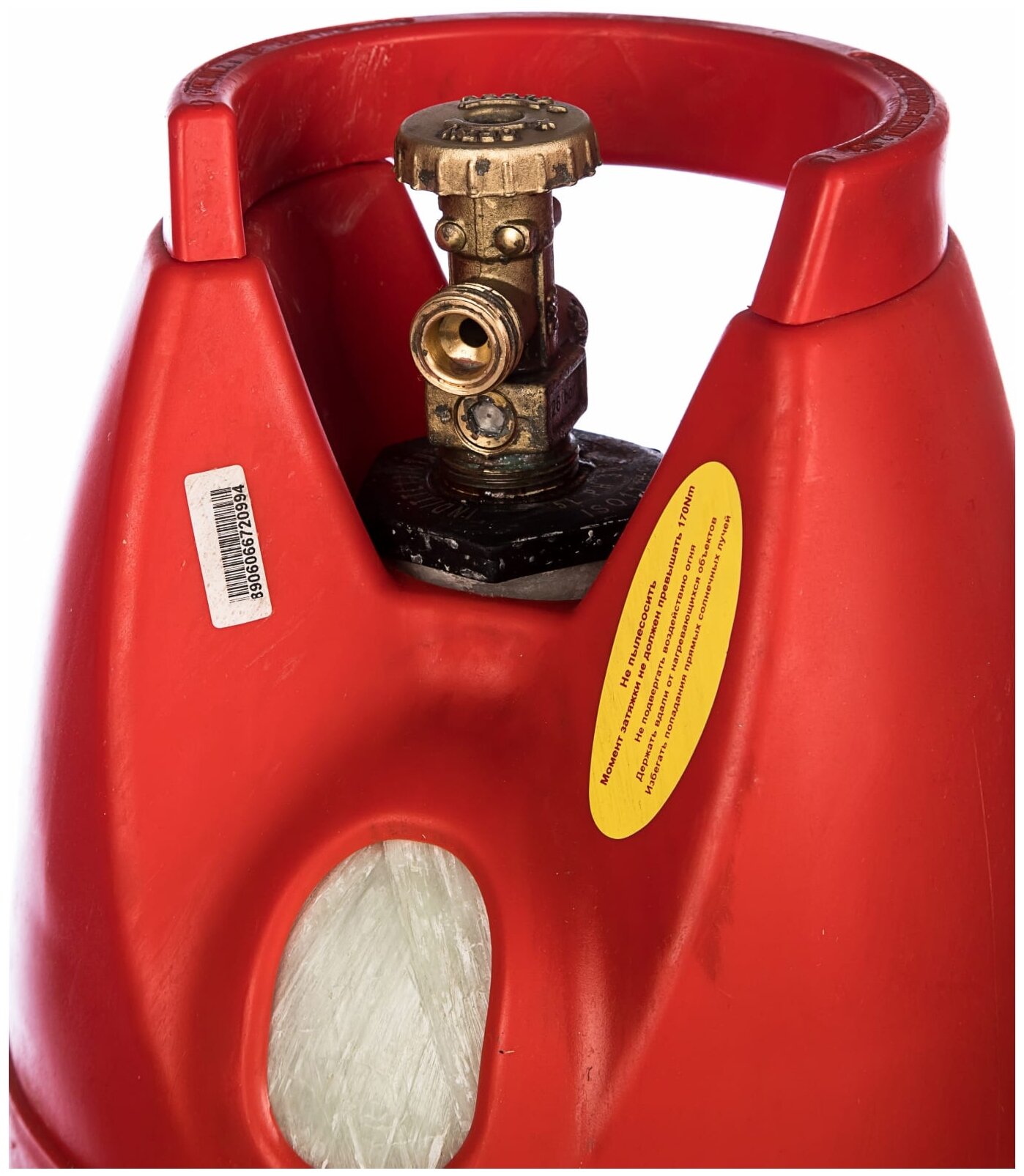 | Плюсы: | Легкий, прочный. Имеются прозрачные окошки, позволяющие видеть уроветь газа в балоне (в жидком виде). |