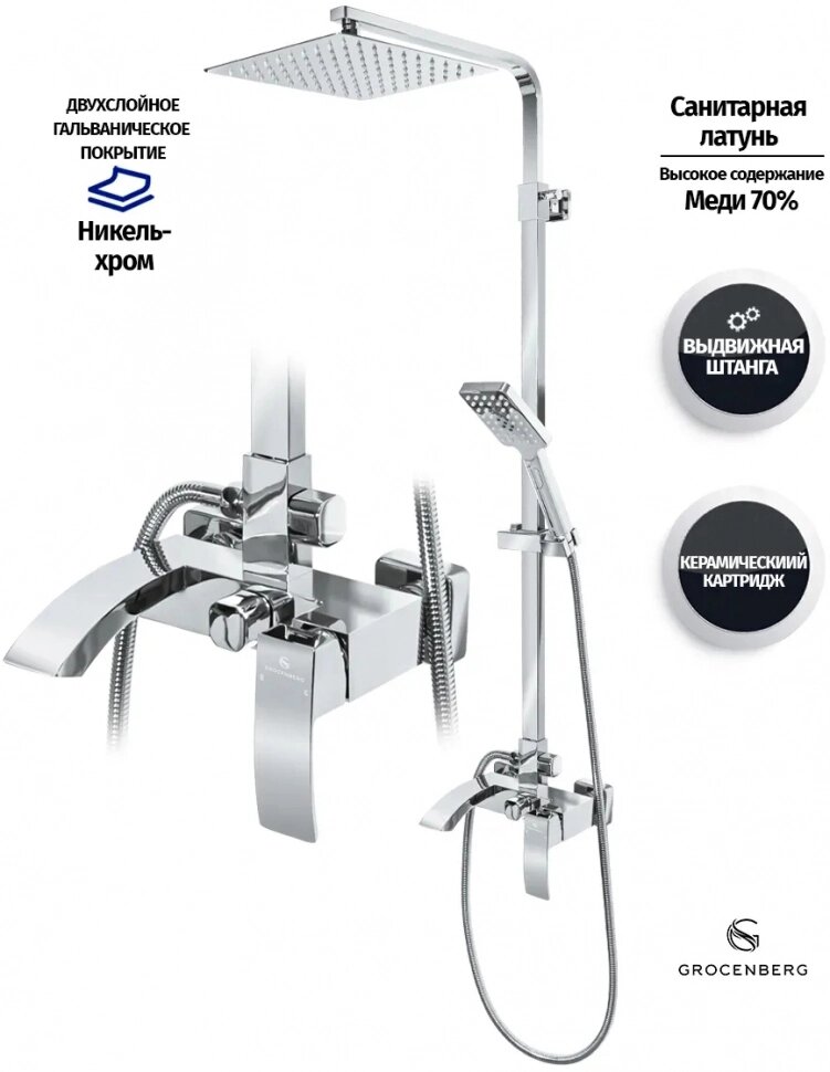 Душевая система со смесителем и тропическим душем Grocenberg GB7007CR Хром