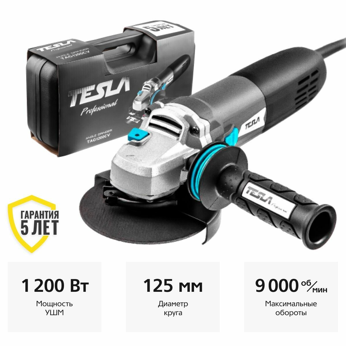 УШМ (болгарка) TESLA TAG1200CV 1200Вт 2000-9000об/мин 125мм кейс