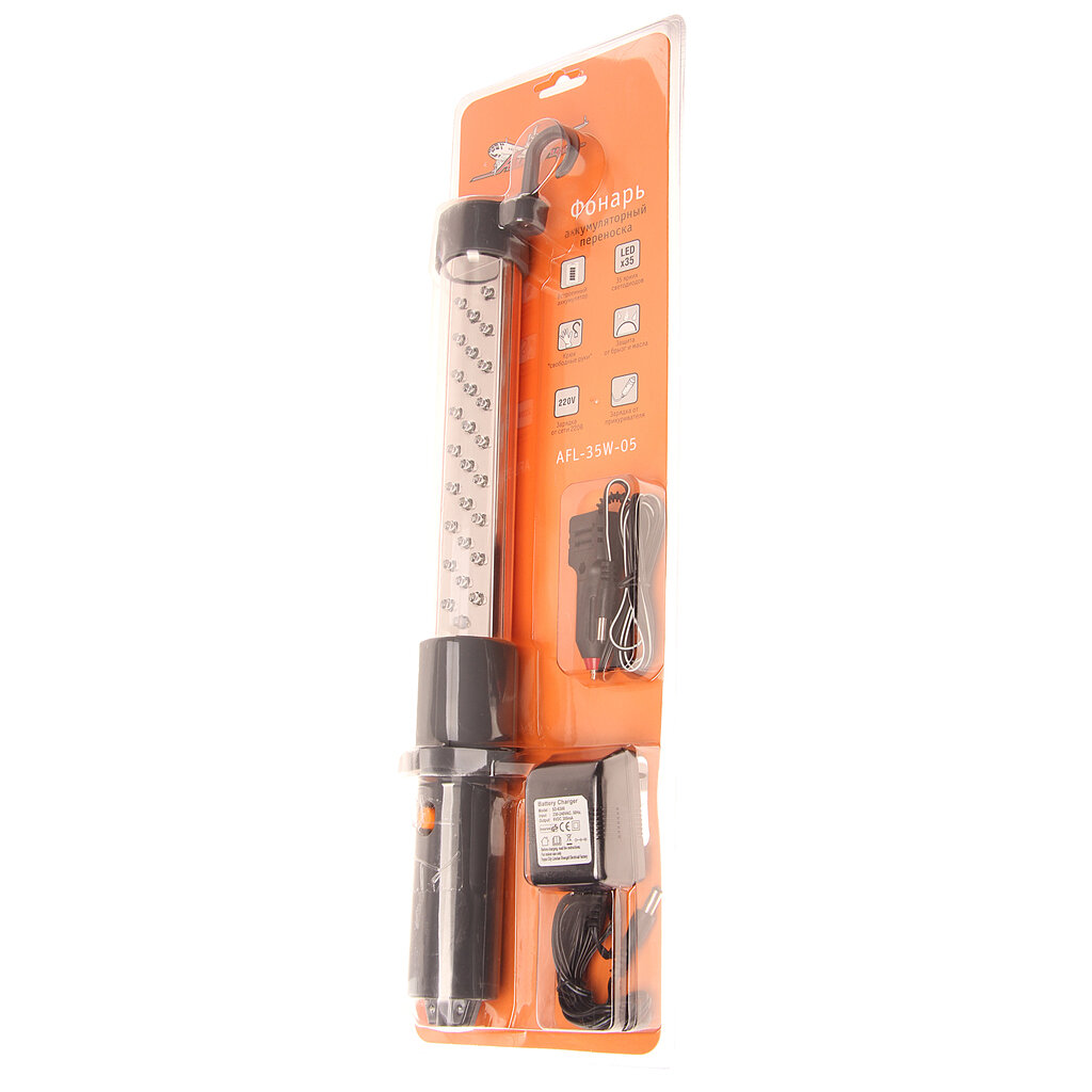 Лампа переносная 12V/220В LEDx35 аккумуляторная с крючком (Airline)