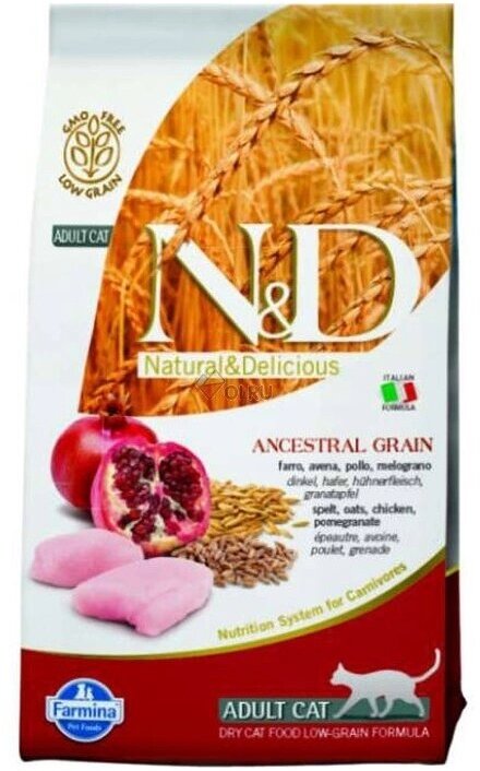 Корм для кошек сухой N&D Ancestral Grain / Фармина Cat Chicken & Pomegranate Adult низкозерновой для взрослых животных всех пород, гранулы с курицей