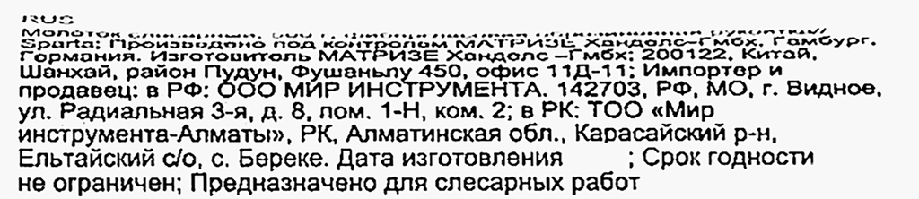 | Тип молотка | слесарный |