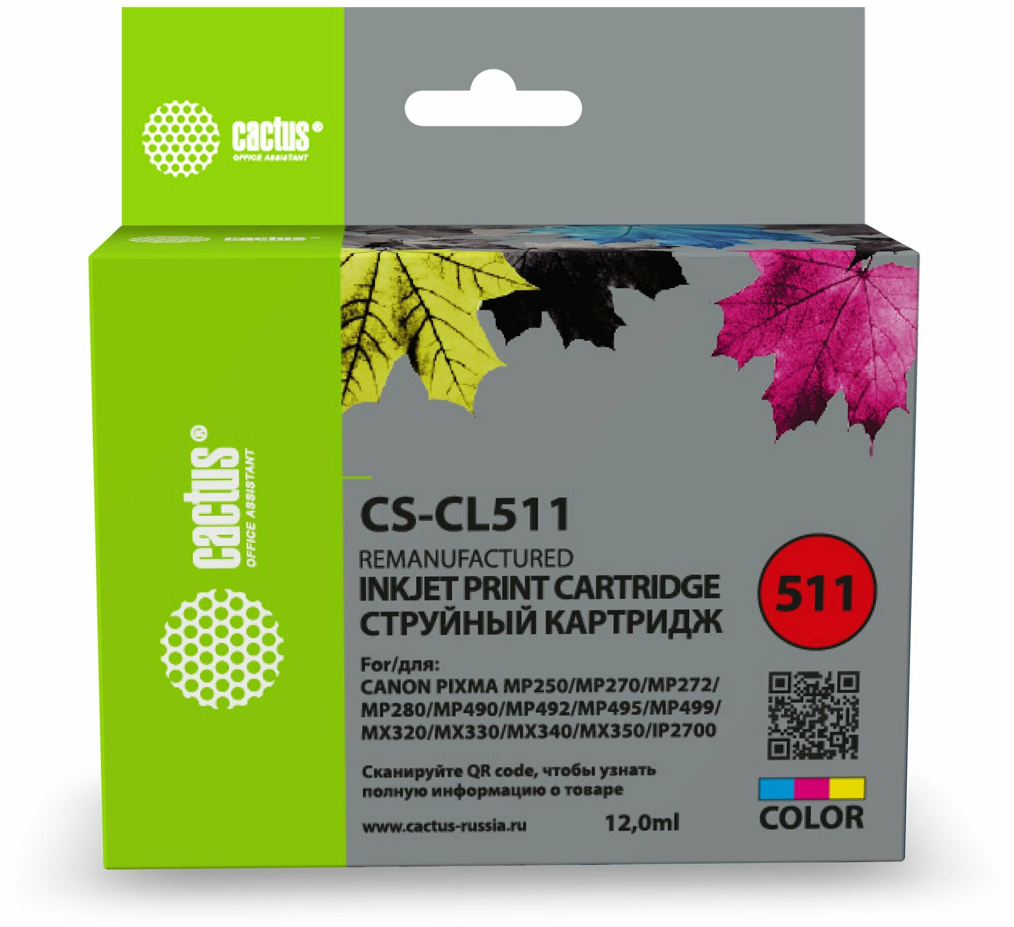 Cactus Расходные материалы CL-511 Картридж CS-CL511 для Canon PIXMA MP240 MP250 MP260 MP270 MP480 MP490 MP492 MX320 MX330, трехцветный, 9 мл