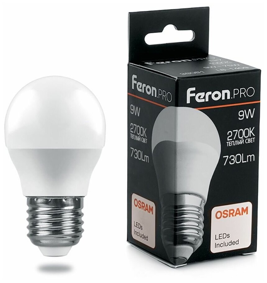 Светодиодная лампа FERON PRO LB-1409 Шарик E27 9W 2700K OSRAM LED 38080
