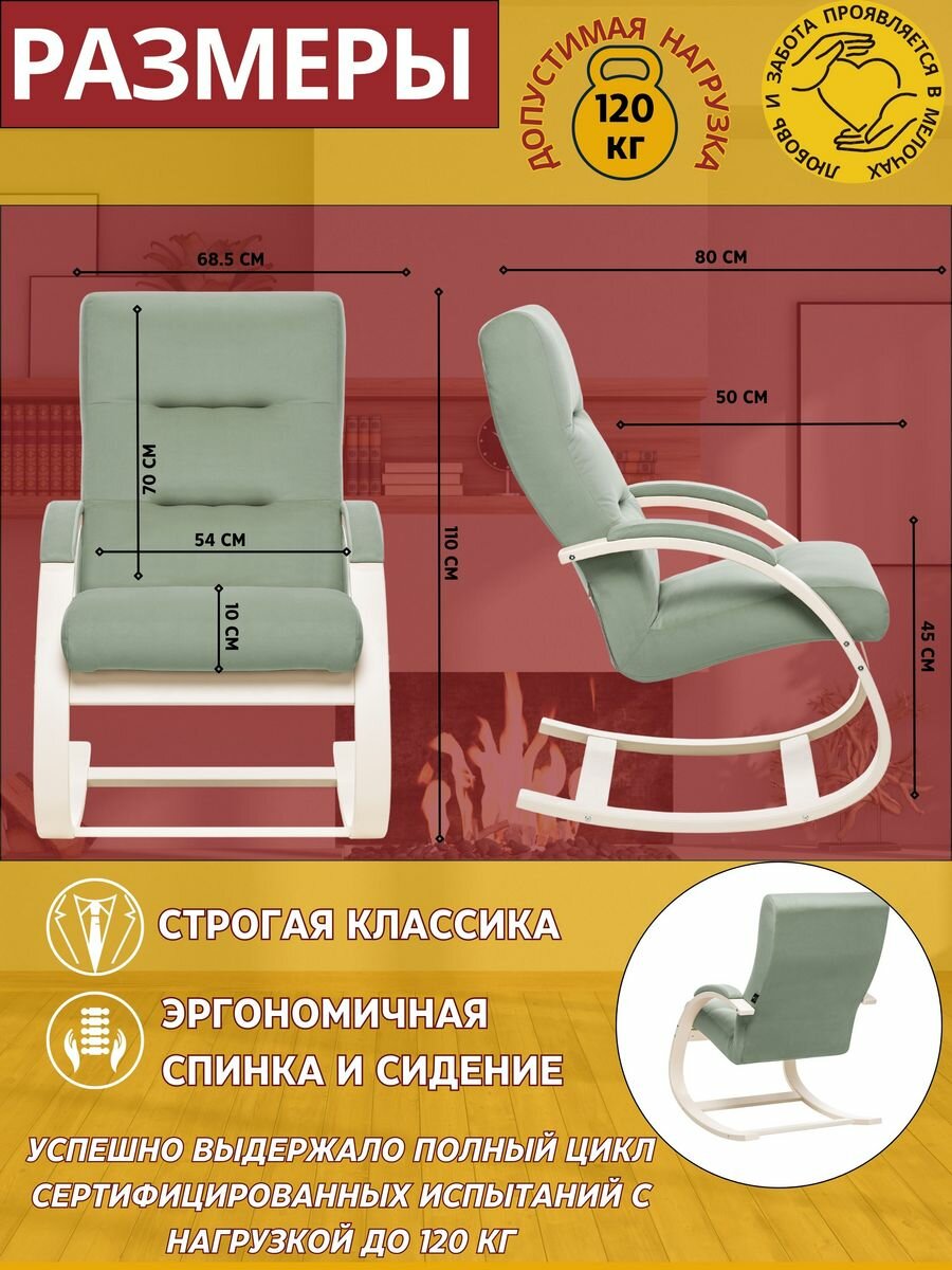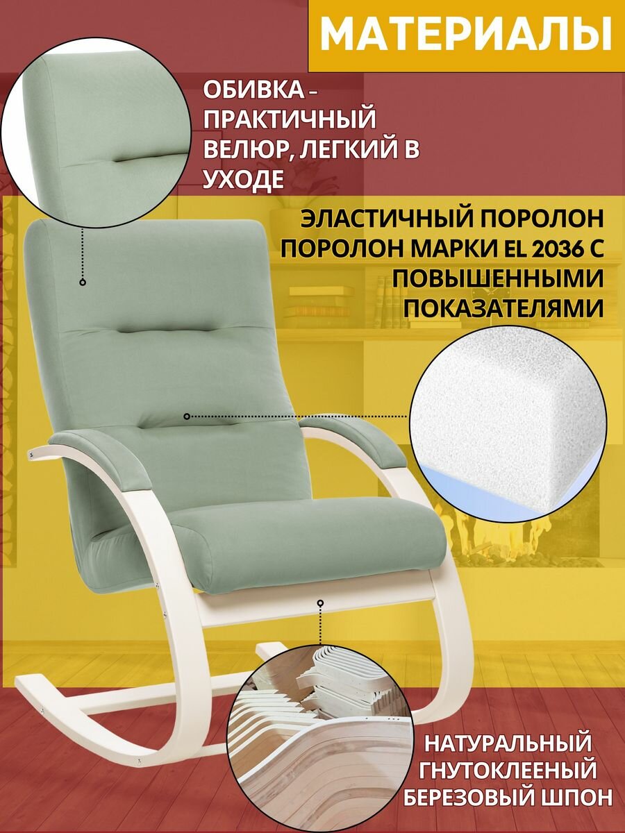 Кресло-качалка Лесет Милано, обивка велюр, цвет светло-зелёный, нагрузка до 120кг