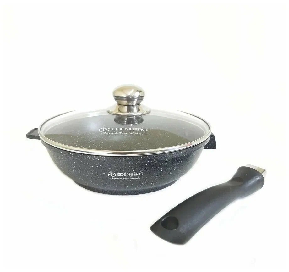 Cковорода с крышкой глубокая Edenberg с антипригарным покрытием для всех видов плит 28 см, черный интересное: