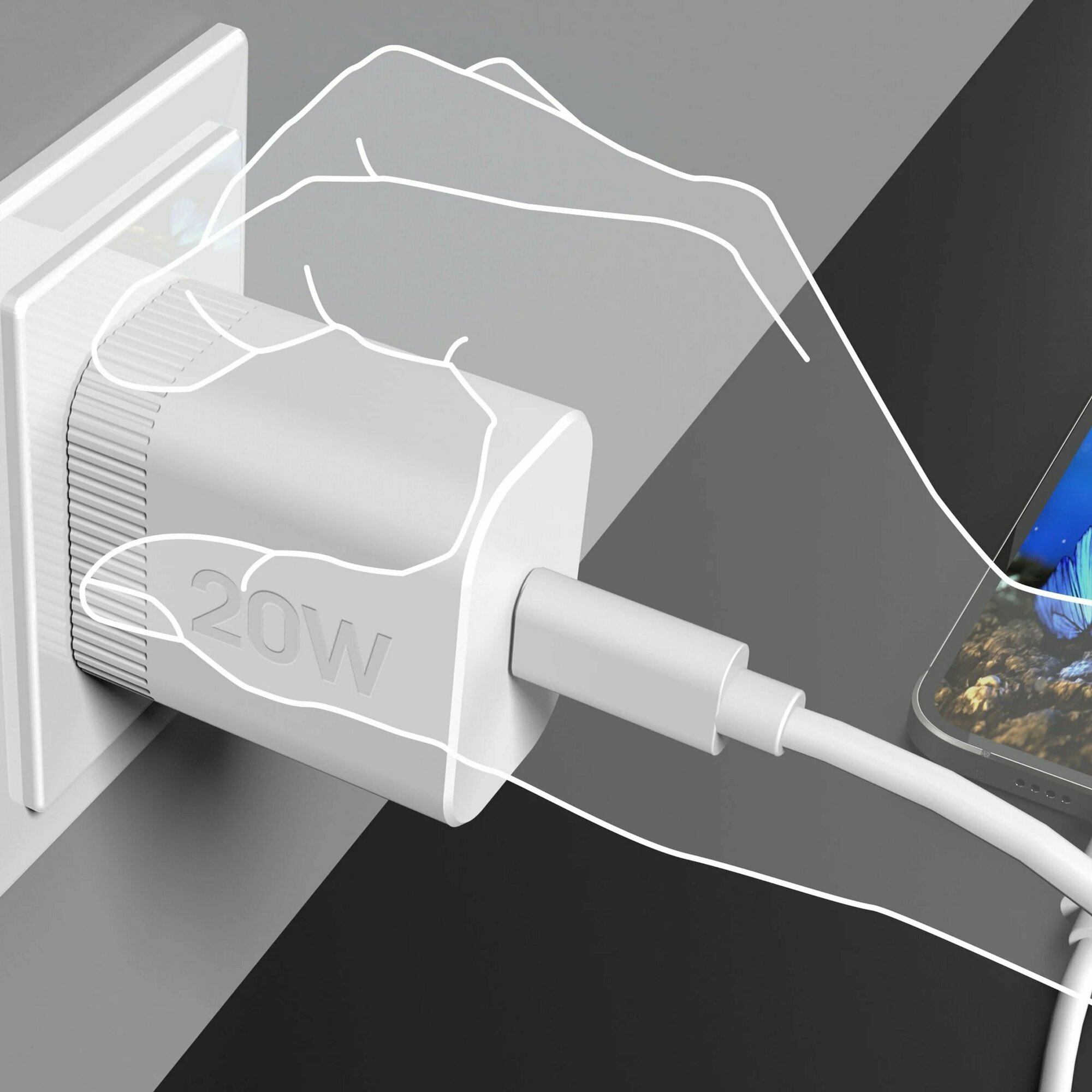 Сетевое зарядное устройство j5create USB-C Wall Charger 20W, USB Type-C, Белый JUP1420