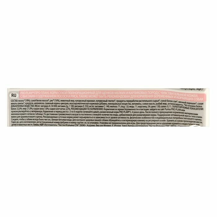 Pro Plan корм для щенков малых и карликовых пород с чувствительной кожей, лосось и рис 700 гр
