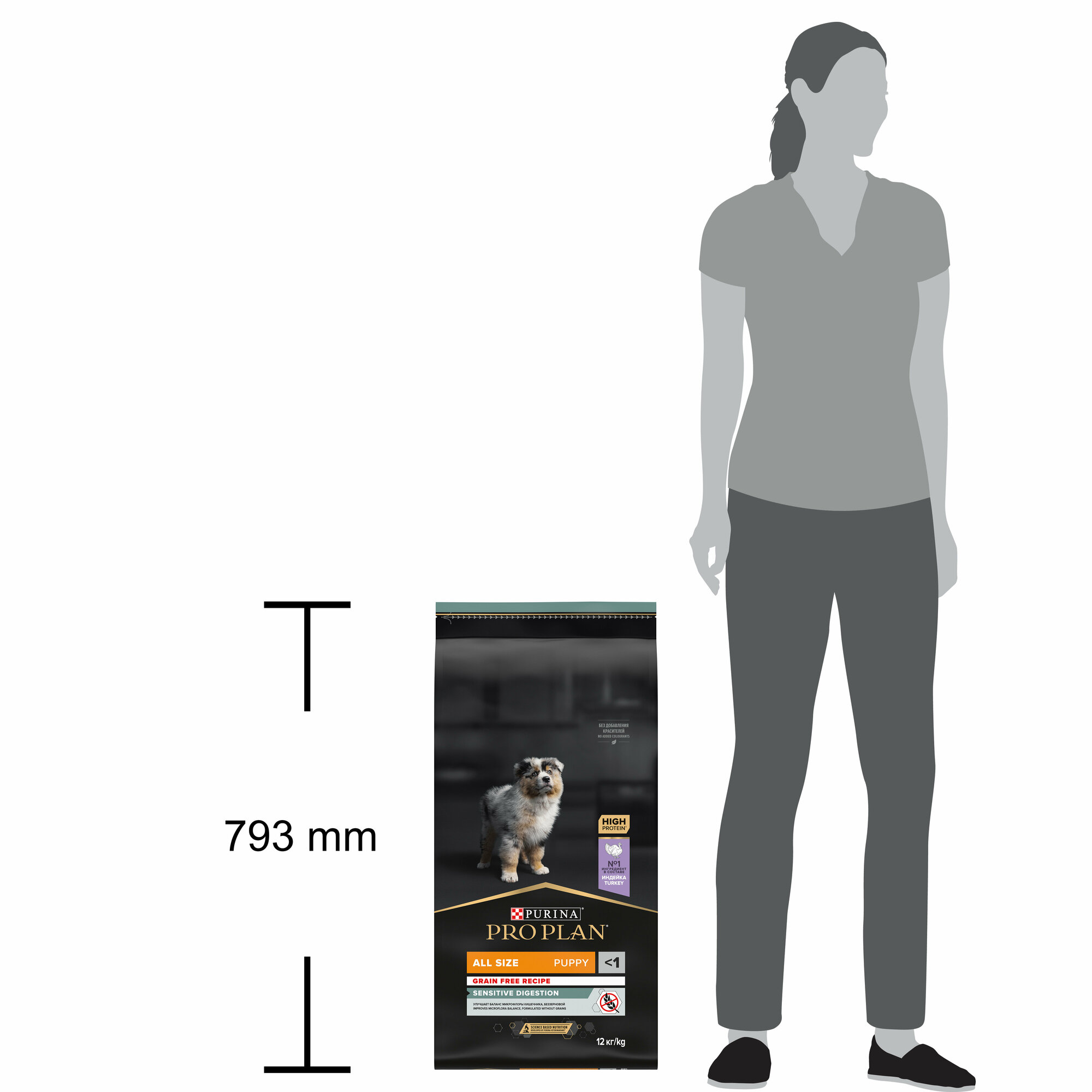 Purina Pro Plan Сухой беззерновой корм для щенков средних и крупных пород с чувствительным пищеварением с индейкой, 12кг